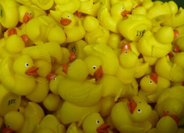 Die „Badeenten“ werden auf dem Außengelände der Kinderburg „Veronika Keller“ aus kleinen Gummibassins von Kita-Kindern „gezogen“. Jede „gezogene“ Ente verweist auf einen Preis. Die Nummer auf der Bauchseite der Ente bestimmt die Art des Gewinnes. 100 Preise im Gesamtwert von über 8.000€ werden angeboten.